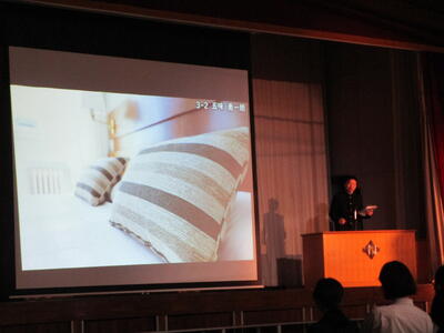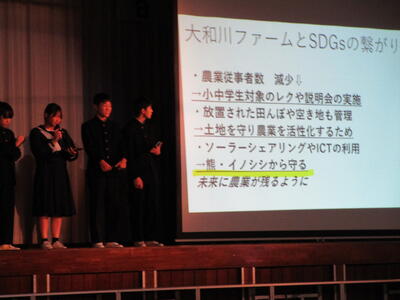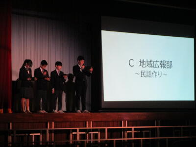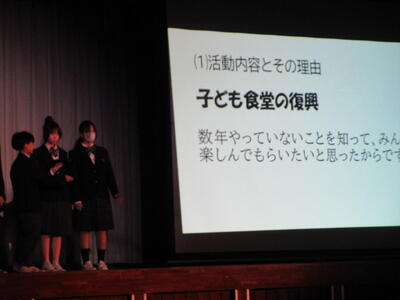 1年生のテーマは「地域貢献」 自分たちだけでなく、地域に住む人々が暮らしやすくするためにできることをいろいろな視点で考えプレゼンしました。