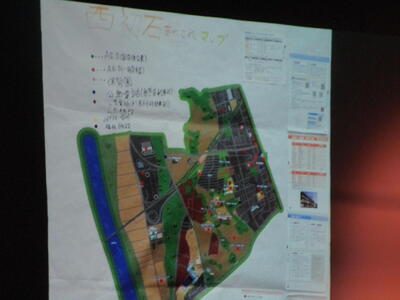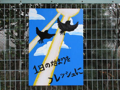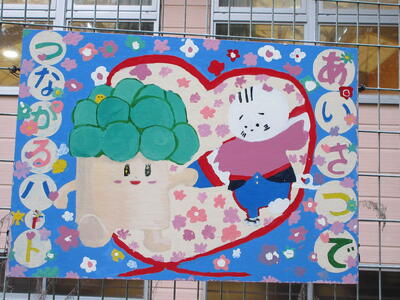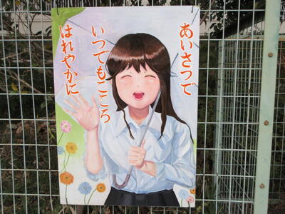 これは、西初石地区の小・中・高連携活動で、明るい街づくりのために命名したもので、横断幕や看板を設置しています。その看板が老朽化してきたので、西中40周年を機に、西初石中総合文化部と流山おおたかの森高校美術部が、合同で新しい看板を作製しました