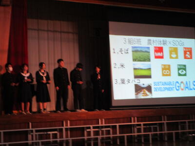 2年生のテーマは「林間学園×SDGs」林間学園の事後学習にSDGsの視点を加えて考えたことをプレゼンしました。