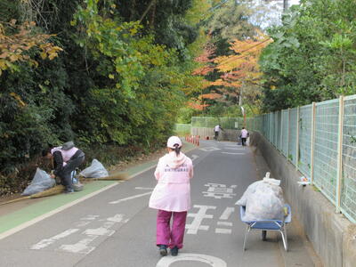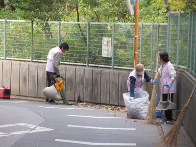 11月20日(木) 西初石中・西初石小の保護者ボランティアの方々が、学校前の道路や正門スロープなどの落ち葉掃きをしてくださいました