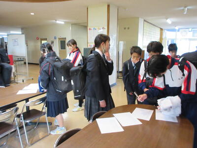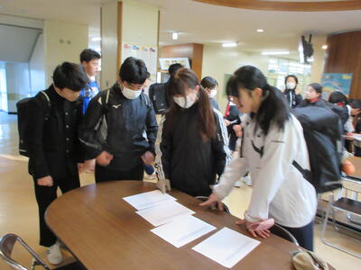 3年生の貢献隊長の呼びかけで、来週実施する「赤い羽根募金」の活動スタッフ希望者が集合しました
