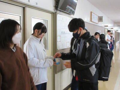 11/25(火)~11/27(木)の3日間、朝7:50~8:05 生徒昇降口にて貢献隊が「赤い羽根募金活動」を実施しました