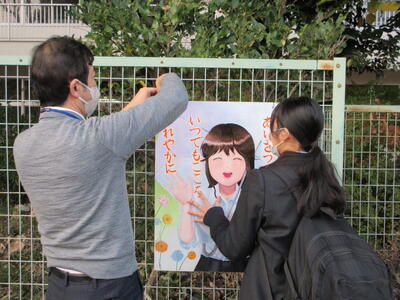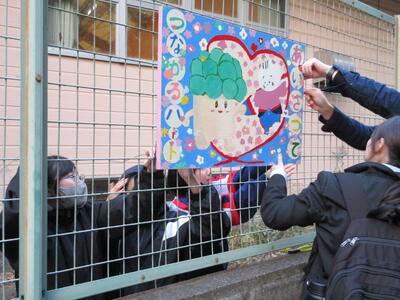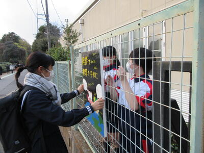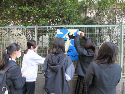 12月2日(火)放課後に、中学生と高校生で古い看板を取り外し、完成した看板を設置しました。ぜひご覧ください