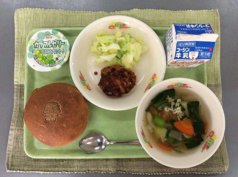 牛乳 チキンカツバーガー ABCスープ マスカットゼリー