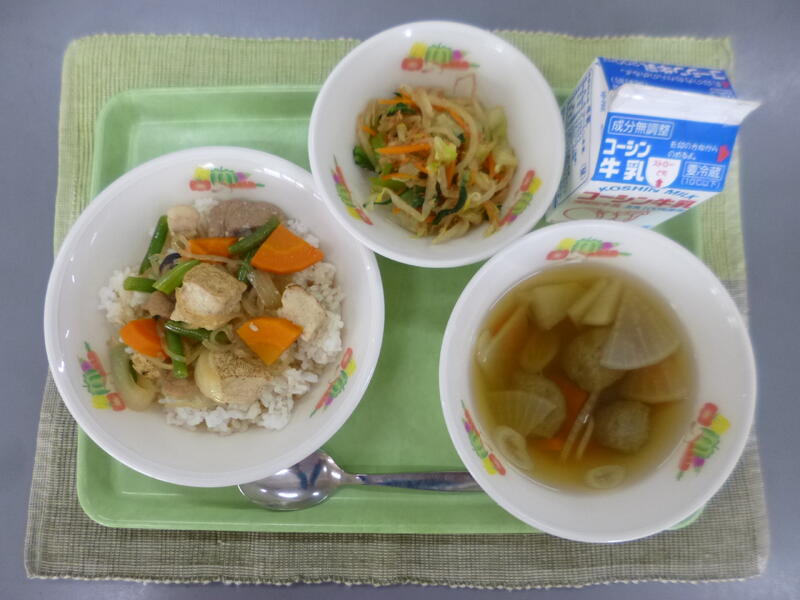 今日は、チキンライスを作りました。たくさんおかわりしている児童もいました。