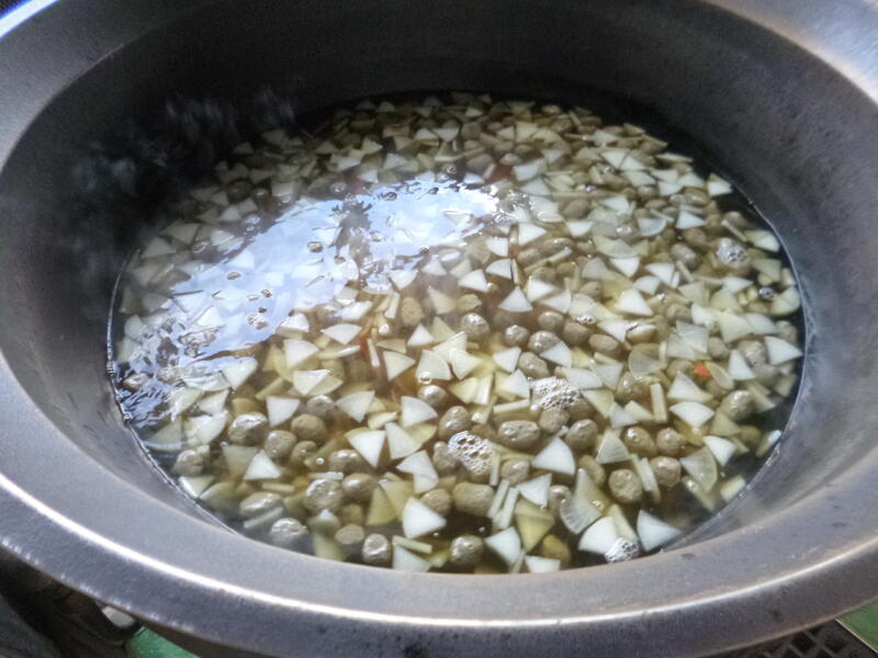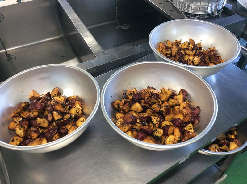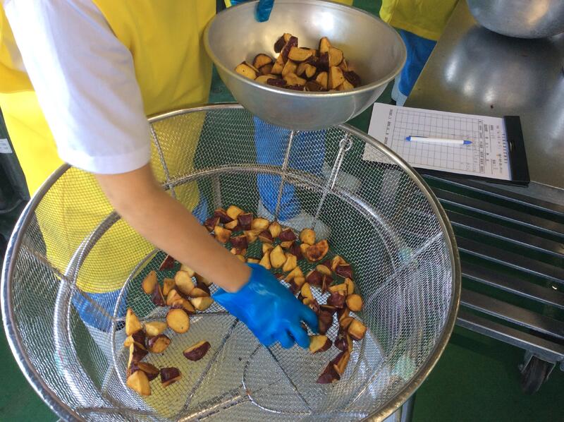 今日は、大学芋を作りました。揚げたさつま芋をクラスの人数で数えた後、タレに絡ませて完成です!