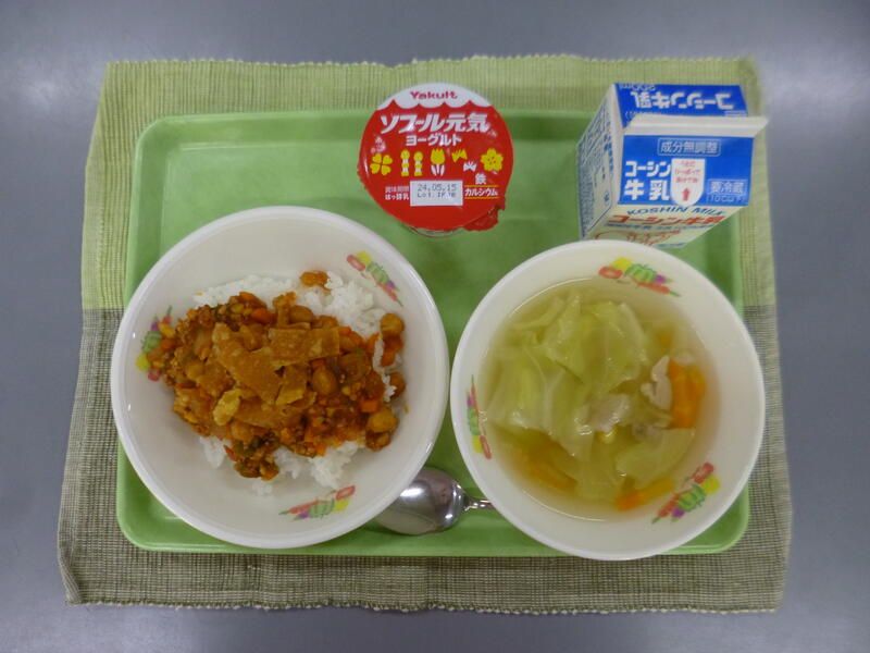 牛乳 パリパリタコス丼 キャベツと豚肉のスープ ヨーグルト