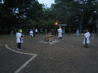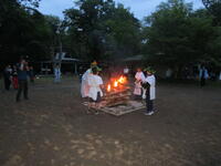 筑波山の後はさしま少年自然の家に向かいます。入所式を済ませて荷物の整理をした後、キャンプファイヤーの準備を行います。