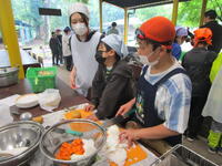 2日目最初のイベントは野外炊飯です。ほとんどの子どもたちが初めての経験となります。予想以上に大きく上がる炎に少し驚きながらも、初めてとは思えない手際でてきぱきとカレーを作っていきます。とてもおいしくできました!