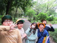 さて、大きな広場で星を観察しているころ。子どもたちがざわざわとしています。「だれかいる?」 すると、遠くから怪しい仮面を被った人間がこちらに近づいてきます。子どもたちが確認すると…熊谷先生、逆井先生、岩谷先生がわざわざ授業後に遊びに来てくださいました。子どもたちも大盛り上がりです!(写真がない…残念。)