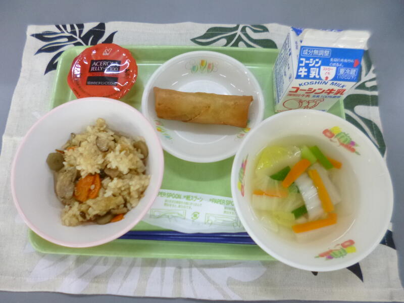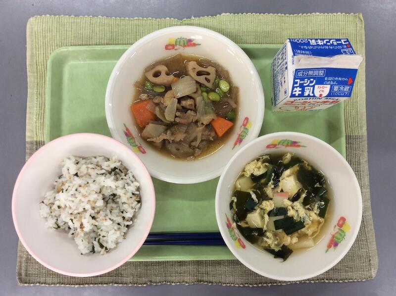 今日は、子どもたちの大好きなわかめご飯を出しました。どのクラスもほとんど残さずに食べていました。