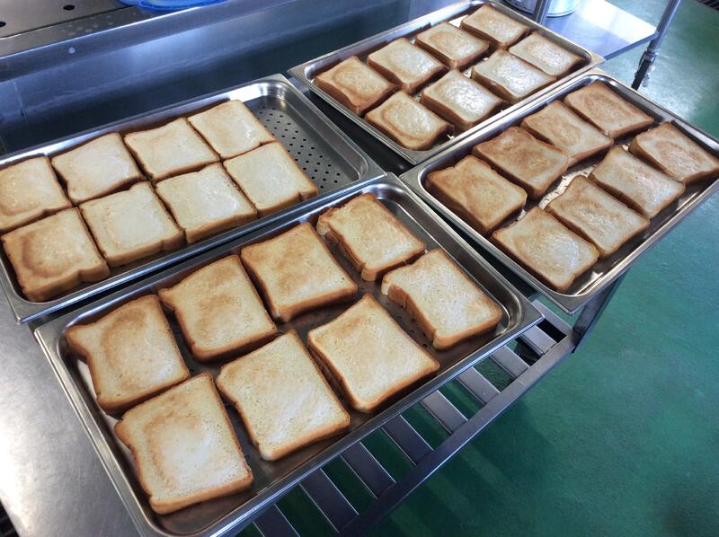 今日は、バニラトーストを作りました。豆乳バターと砂糖とバニラエッセンスを混ぜたものをぬって焼きました。