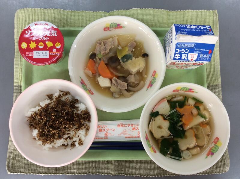 牛乳 エコふりかけ 肉豆腐 チーバくんのすまし汁 ヨーグルト