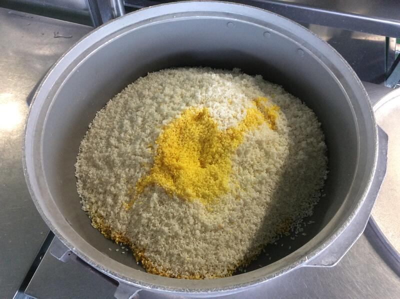 今日は、パエリアを作りました。サフランの粉を入れてご飯を炊きました。サフランの粉はもともと赤い粉ですが、料理に使うときれいに黄色に染まります。