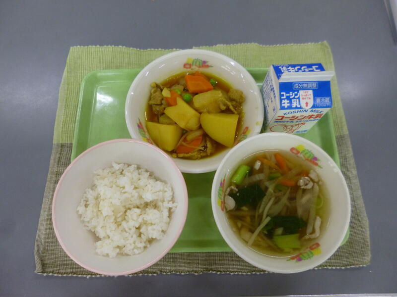牛乳 ごはん カレー肉じゃが 沢煮椀