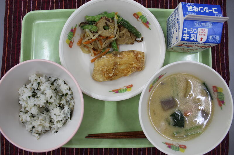 今日のあげパンは、抹茶ときなこをまぜて味つけをした「抹茶きなこあげパン」です。抹茶は、緑茶をすりつぶして粉にしたものです。4月の終わりから5月ごろがお茶の季節なので、これから抹茶のスイーツなどがお店にたくさん並ぶと思います。今日は抹茶の香りを楽しんでみてください。