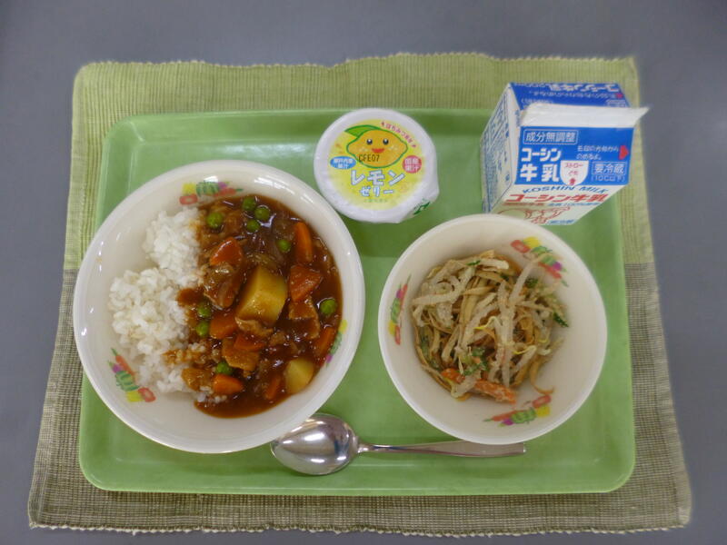 牛乳 ハヤシライス ごぼうのサラダ はちみつレモンゼリー