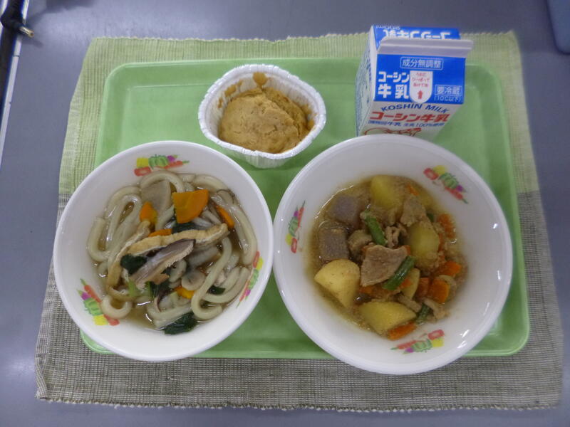 牛乳 ごはん カレー肉じゃが 沢煮椀