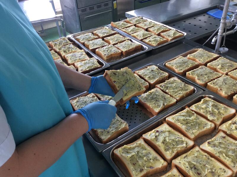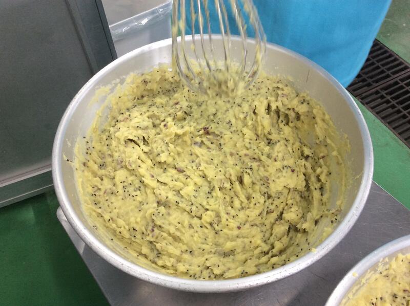 今日は、みりんスイートポテトトーストを作りました。流山市発祥のみりんと千葉県産のさつまいもを豆乳や砂糖と混ぜてペーストにしてパンに塗りました。