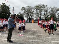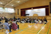 会の最後には、代表児童の言葉に合わせて「頑張ってください。」と励ましました。ミニバス部・吹奏楽部の皆さんは、全校児童の応援を力に変えて頑張って来てください!