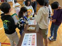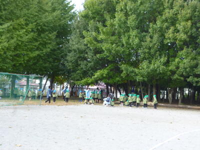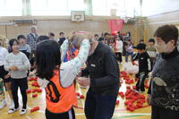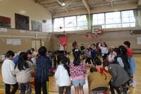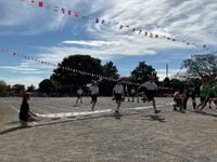 次に、4年生の出し物「合唱&みんなで玉入れ競争」が行われました。合唱では、練習の成果を十分に発揮し、来てくださった地域の方々を笑顔にすることができました。玉入れ競争では、地域の方々と2年生と4年生の混合チームを4つ作り、トーナメント戦を行いました。