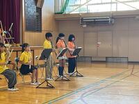 10月17日(火)に、ミニバス部・吹奏楽部を励ます会が行われました。最初は、吹奏楽部による『かえるのうた』をはじめとする童謡メドレーと『パプリカ』の演奏が行われました。様々な楽器が生み出すハーモニーと四年生の可愛らしいダンスが、子どもたちを釘付けにしていました。