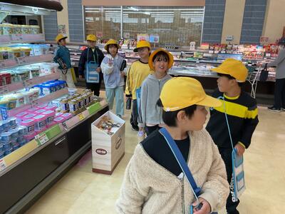 10/30(木)、3年生の社会科の学習で、コープ東深井店へスーパーマーケット見学にうかがいました。スーパーマーケットでは、お客様に商品をお届けするためにどのような工夫をしているのでしょうか。いざ、調査開始!