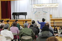 次に、2年生の出し物「町のすてきを発表しよう」が行われました。11月6日(木)のまち探検で学んだことを、ポスターにまとめたり、クイズを出したりしました。一生懸命に発表する2年生の姿が、会場全体の雰囲気をあたたかくしていました。