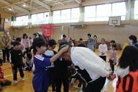 次に、ミニバス部の選手紹介とミニゲームの披露が行われました。ミニゲームでは、練習の成果を発揮し、生き生きとプレーする選手の姿が印象的でした。子どもたちは、目の前で繰り広げられる攻防に精一杯の声援を送っていました。