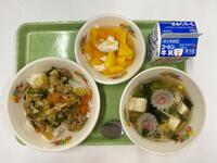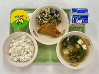 牛乳 ごはん 白身魚の立田あげ のり和え 豆腐とわかめのすまし汁 はちみつレモンゼリー
