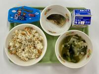 牛乳 じゃこちらし寿司 ほっけの一夜干し 若竹汁 こいのぼりゼリー