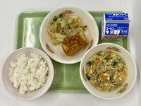 牛乳 ごはん 揚げ豆腐のチリソースかけ 中華サラダ もずくと卵のスープ