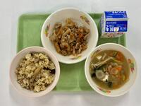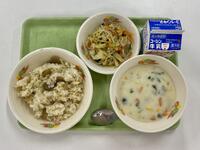 牛乳 秋の香りごはん れんこんのきんぴら 豚汁