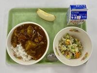 牛乳 チキンカレーライス コールスローサラダ りんご
