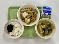 牛乳 ごはん かつおのごまだれかけ おかか和え じゃがいものそぼろ汁