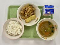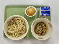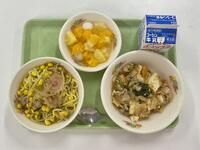 牛乳 焼きうどん 豚肉と野菜の細切り炒め 米粉のフルーツケーキ