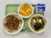 牛乳 ホイコーロー丼 わかめスープ フルーツのゼリー和え