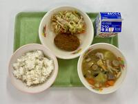 牛乳 ごはん おろしソースハンバーグ ツナとキャベツの和え物 根菜のみそ汁