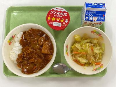 | イシオカです!今日の献立は、ハヤシライス、こんにゃくサラダ、ヨーグルトです。ハヤシライスは、野菜とハヤシソース、ご飯がうまくマッチしていて美味しかったです。こんにゃくサラダは、こんにゃくの食感が柔らかくてとっても美味しかったです。ヨーグルトは、甘くておいしかったです。 |