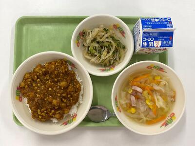 牛乳 きなこ揚げパン 海藻サラダ チリビーンズ