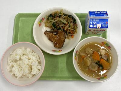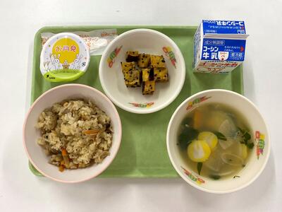牛乳 ごはん 白身魚のみそマヨネーズ焼き 切干大根の煮物 じゃがいものそぼろ汁