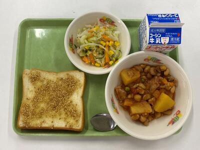 牛乳 白みりんトースト コールスローサラダ ポークビーンズ
