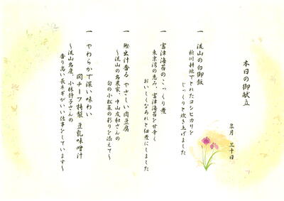 「のり佃煮」は給食室の手作りです。のりと調味料をよく煮詰めて作りました。子どもたちからは、「これがあるとごはんが進む!」との声も。