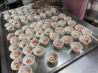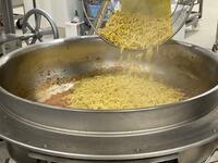 「フルーツ豆乳杏仁」は、たっぷりのフルーツ缶詰と優しい甘さの豆乳杏仁豆腐で、どのクラスでもおかわりの列ができていました。