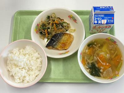 牛乳 ごはん さばのスタミナ焼き 野菜の梅おかか和え じゃがいものそぼろ汁