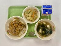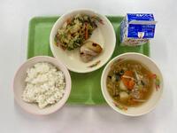 牛乳 ごはん 鮭のみそマヨネーズ焼き きんぴらごぼう むらくも汁