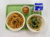 牛乳 スパゲティトマトソース たっぷり野菜のスープ 米粉のパイナップルケーキ