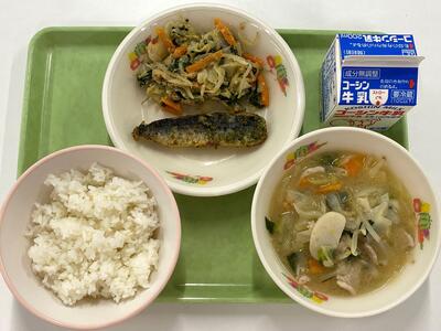 牛乳 ごはん いわしの磯辺揚げ ごま和え ちゃんぽんみそ汁