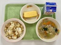 牛乳 こぎつねごはん 厚焼き卵 野菜のごま汁