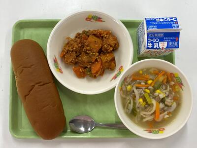 一覧へ 1. 今日の給食!2月21日(水) 投稿日時: 2024/02/21 情報担当 牛乳 黒糖パン 揚げじゃがいものトマト煮 麦のリゾットスープ じゃがいもを油で揚げる一手間で、おいしいトマト煮がさらにおいしくレベルアップした料理になります。子どもたちも、揚げたじゃがいもの風味はなぜかとても好きな様子ですよね。 具だくさんなスープに入った細い食材の正体は、切り干し大根です。煮物以外ではなかなか目にする機会もなく、「これはなに?」という子もいました。